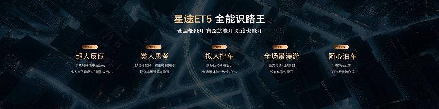 星途ET5以无与伦比的超智慧,打破了传统豪华的边界。它搭载猎鹰700辅助驾驶,全球首发地平线HSD及征程®6P芯片,以远超同级的560TOPS算力,构建起强大的数字底座,实现国内首个真正一段式端到端架构。星途ET5拥有了“超人反应”“类人思考”“拟人控车”“全景漫游”“随心泊车”五大核心优势,无论是在拥堵的城市高峰,未知的无图路段,星途ET5都能回馈毫秒级响应,优于行业40%;同级领先27颗传感器,3个足球场无死角覆盖,赋予驾驶者绝对的掌控感与安全感。星途始终坚持“能用是底线、敢用是标准、爱用才是享受”!